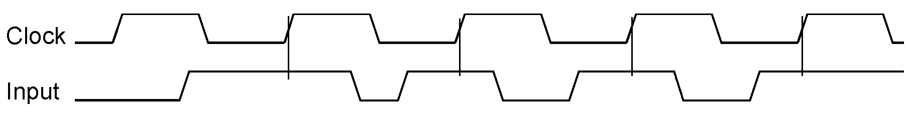 Metastability problems (2). The coincidence of edges that the arrows point to may occur when the asynchronous input is connected to the CLK (clockt) input of the capturing flip-flop.