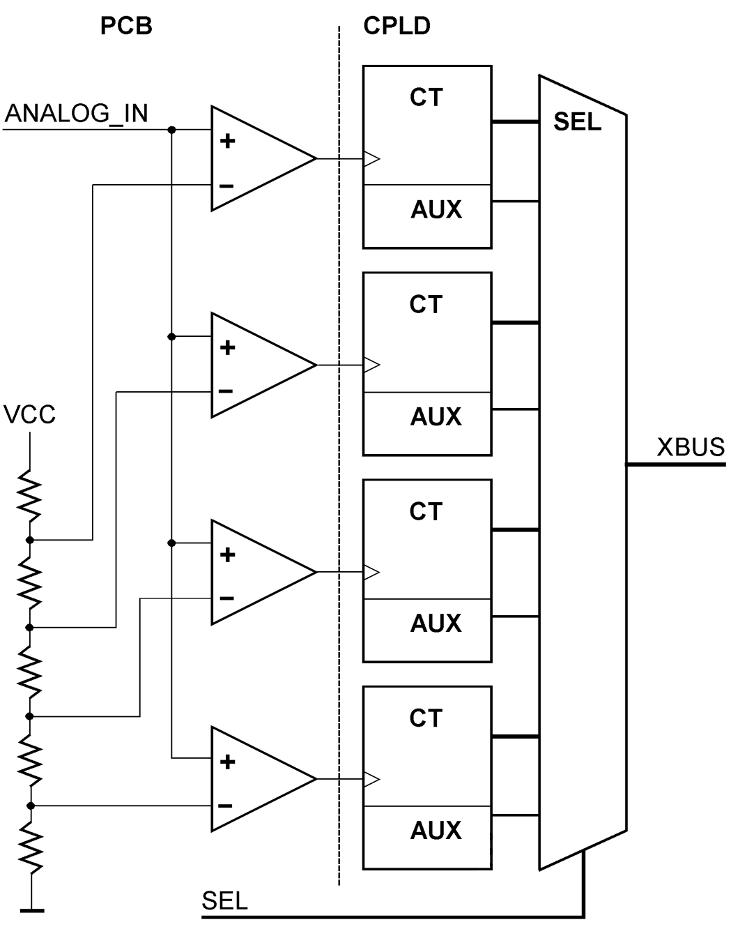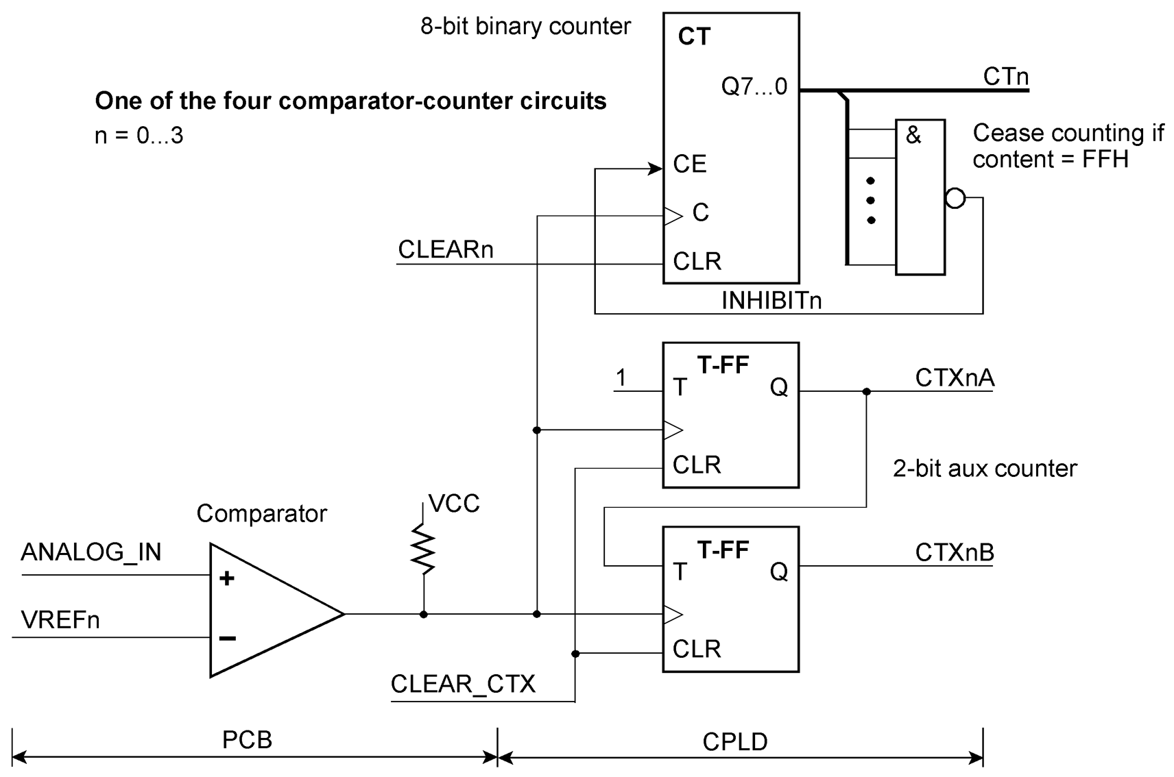 One of the comparator-counter circuits (CT / AUX):