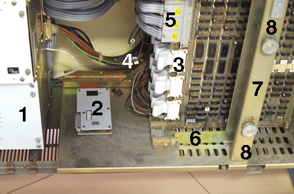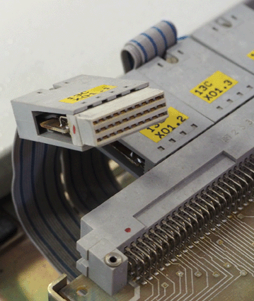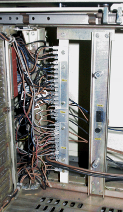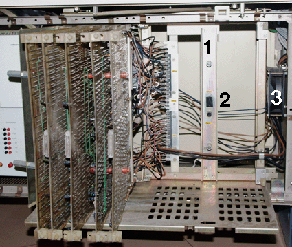 Das Schlimmste am ganzen Gerät waren die Stromversorgungsanschlüsse der Leiterplatten. Alles einzeln über Flachsteckhülsen aus der KFZ-Technik. Es gab nichts Besseres... Beim Leiterplattentausch einzeln abziehen und wieder stecken. Wir hatten schon überlegt, die Hautabschürfungen, die man sich dabei gelegentlich zuzieht, als Berufskrankheit anerkennen zu lassen...