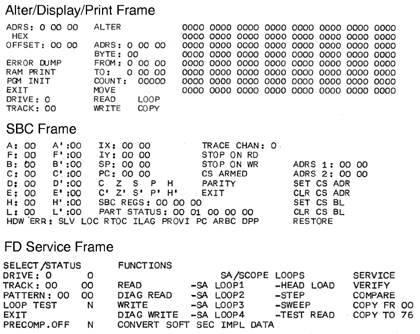 *: Gut gemeint, nützt aber hier nicht viel; der Z80 läßt sich nun mal nicht anhalten. Fehlersuche mit Oszilloskop oder Signaturanalyse und Testsoftware. Elementarbedienung über Diagnoseadapter. War eine gewisse Funktionsfähigkeit (CAPABILITY) erreicht, über Tastatur und Bildschirm (Wartungssystem).